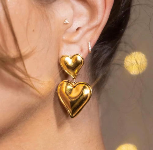 Gold Double Love Studs