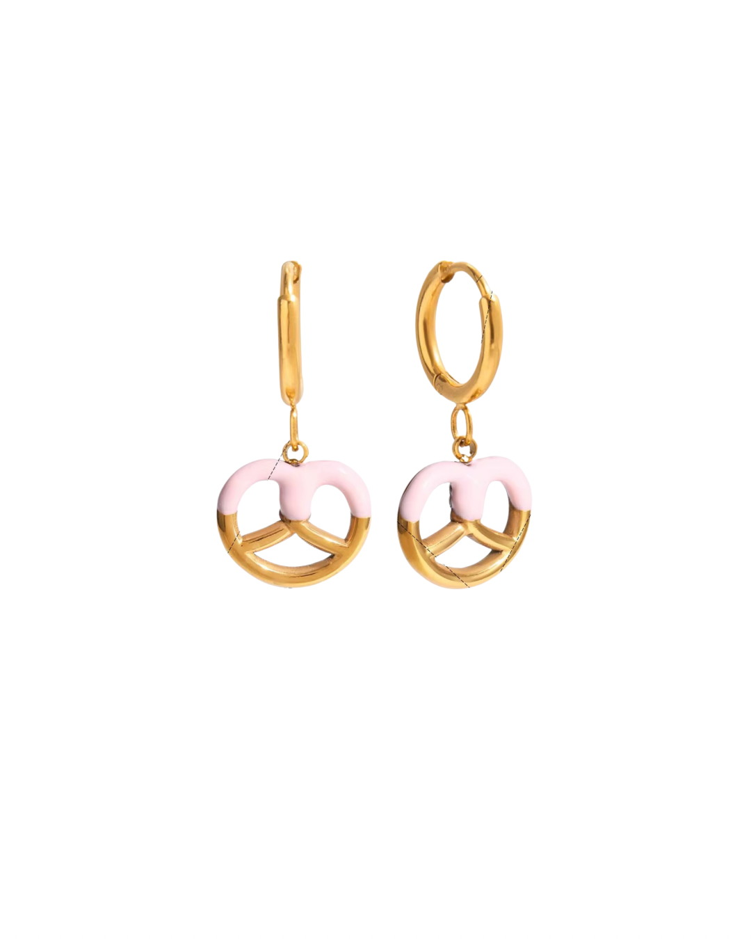 "Wrap your ears with these Pretzel Huggies, the perfect treat for foodies. Made with hypoallergenic nickel-free stainless steel, these 18k gold-coated earrings are as durable as they are delicious. And they're even waterproof! (Just don't try to eat them.)"